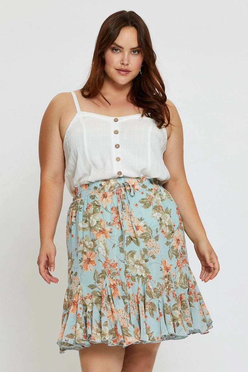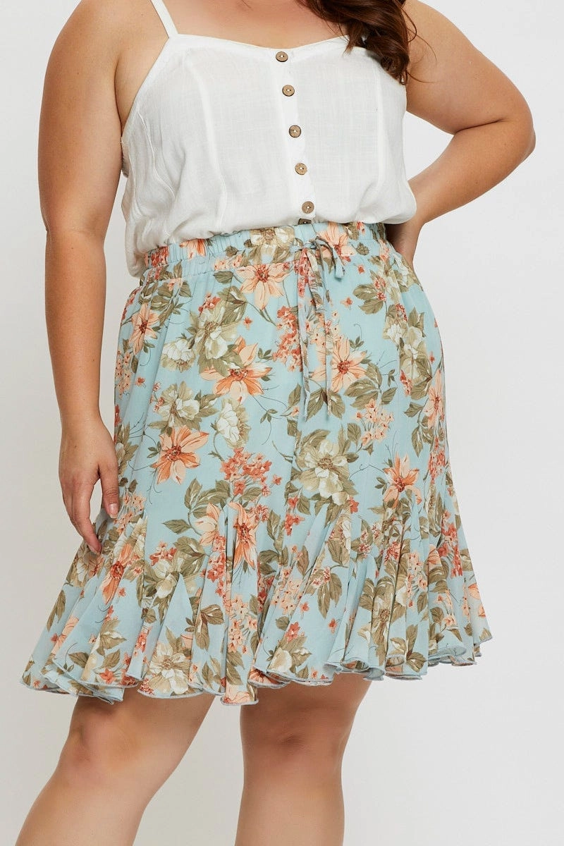Feature: Floral Print, Drawstring Detail, Ruffle Hem, Elasticised Waistband